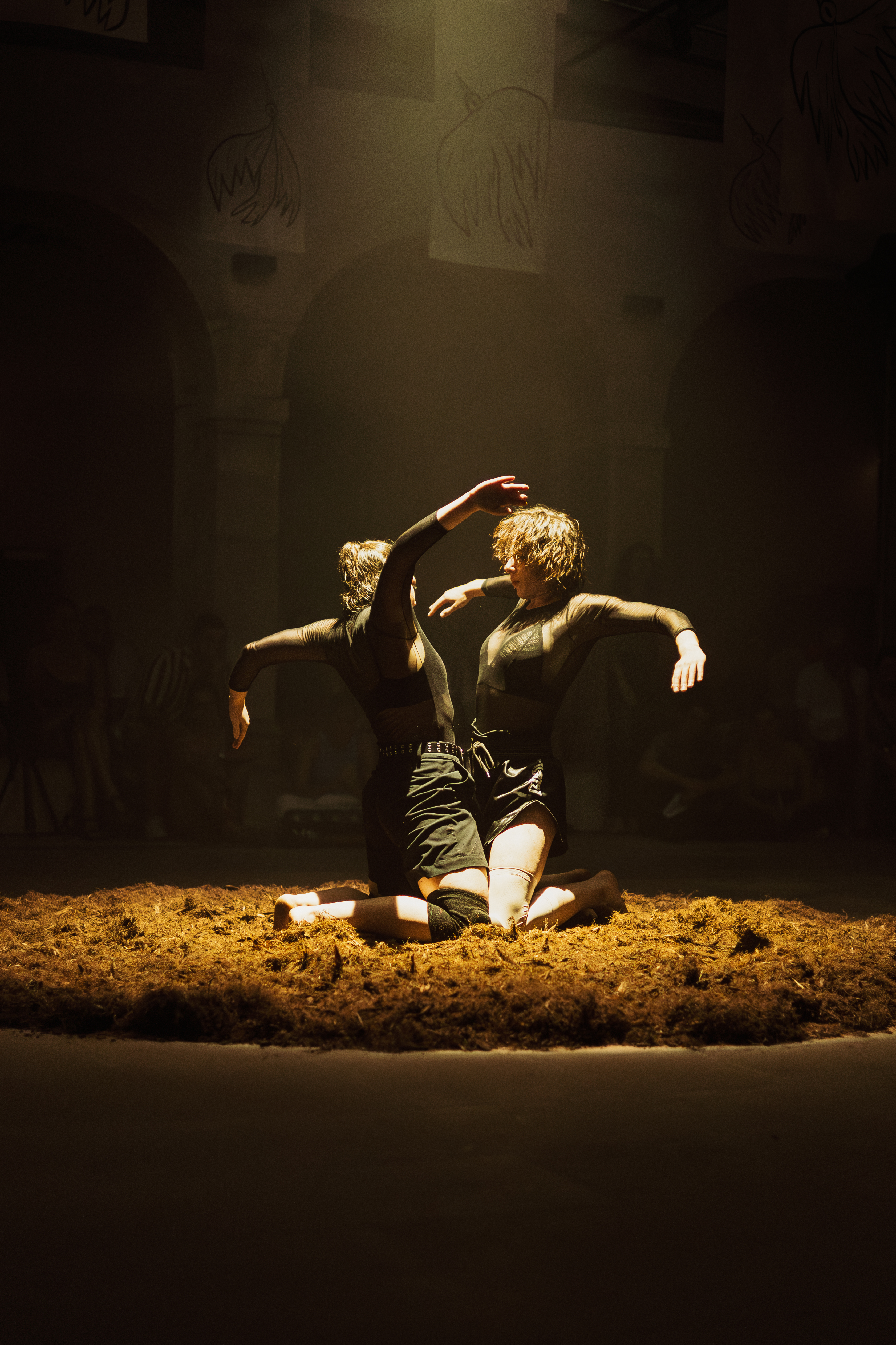 Dans cette forme, les danseuses se rencontrent dans un commun éphémère : une fête qui vibre puis se fissure au fil de la transe impulsée par MÉZINC. Les corps se répondent et se soutiennent, traversant conflits, aspérités et vulnérabilités.